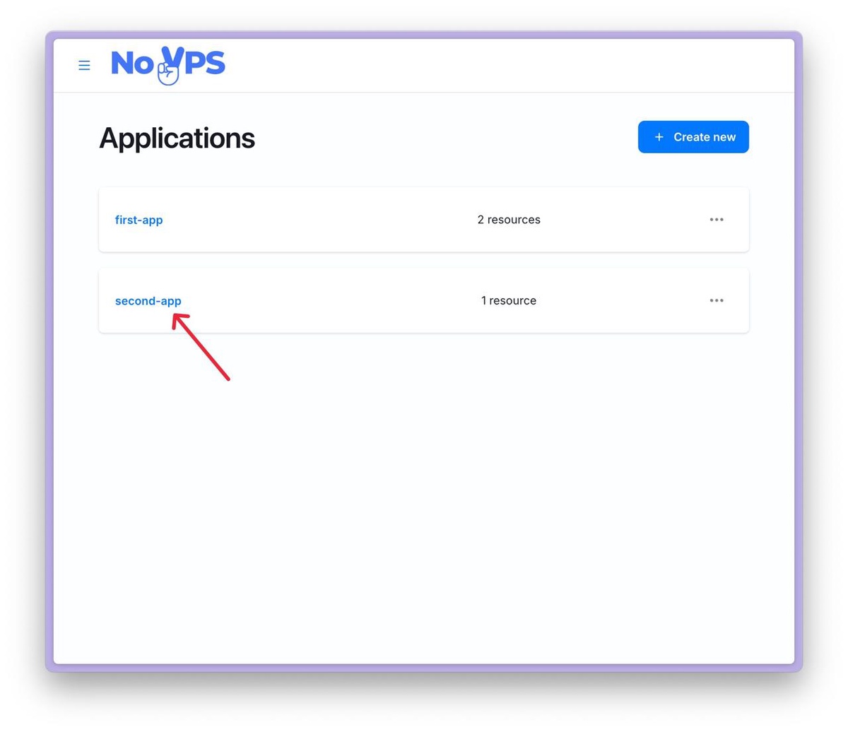 1. First, select the desired application on the dashboard home page and click on its name.